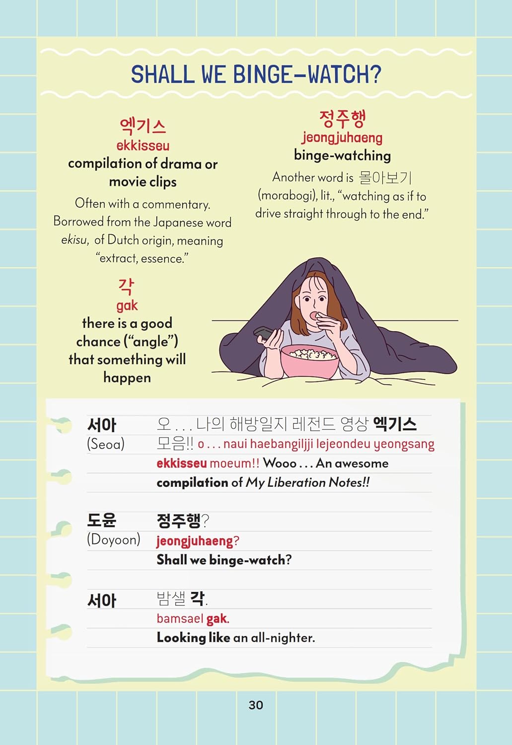 Whether you’re looking to expand your knowledge of Korean, or just a K-pop and K-drama fan, this book contains a treasure trove of useful language.