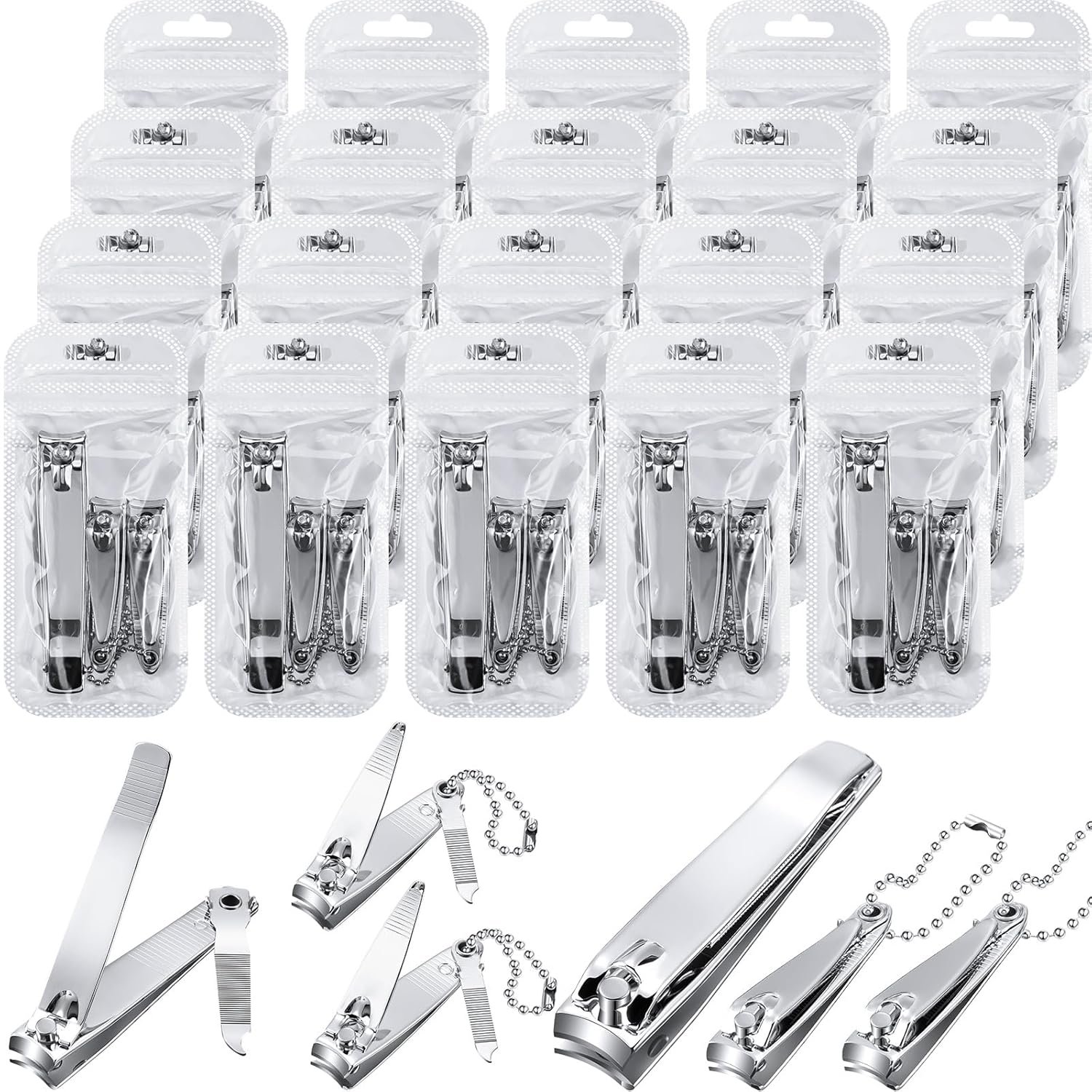 Nail Cutter Set: you will receive 60 pieces nail clipper set, includes 40 pieces small nail clippers with nail file sharp and chain and 20 pieces large toenail clippers with nail file sharp; The small finger nail clippers measure about 2 inches, and the large toe nail clippers measure about 3.2 inches, different sizes can effectively meet your different nail care needs; Warm reminder: there are 20 packs in total, each pack contains two small finger nail clippers and one large toenail clippers