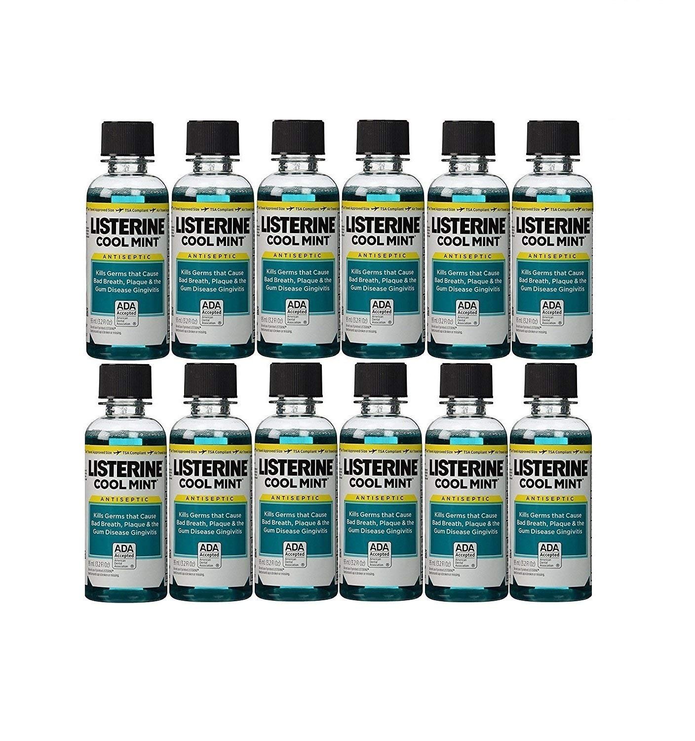 Listerine Cool Mint Antiseptic Mouthwash for Bad Breath, Travel Size 3.2 oz – Pack of 12