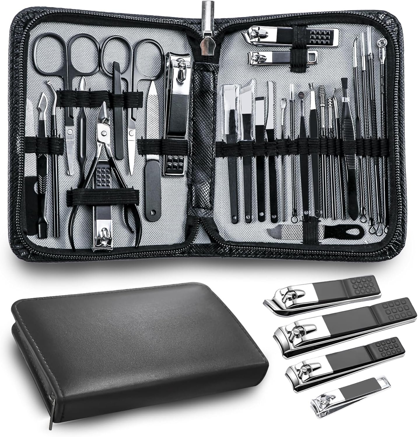 Manicure kit Personal Care Mens Grooming Kit, 30 in 1 Professional Nails Kit Pedicure Kit, Nail Clippers for Men and Beauty Tool Portable Set, with Luxurious Travel Case (Black)