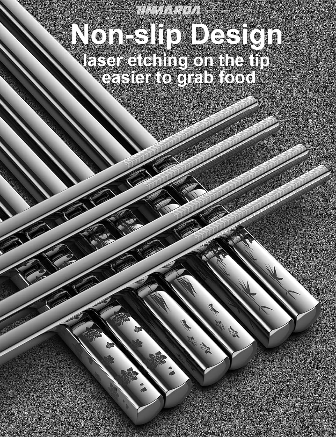 Non-slip Design: The laser etching on the stainless steel chopsticks tip, easier to grab food. Square design & light weight, comfortable to hold and less rolling