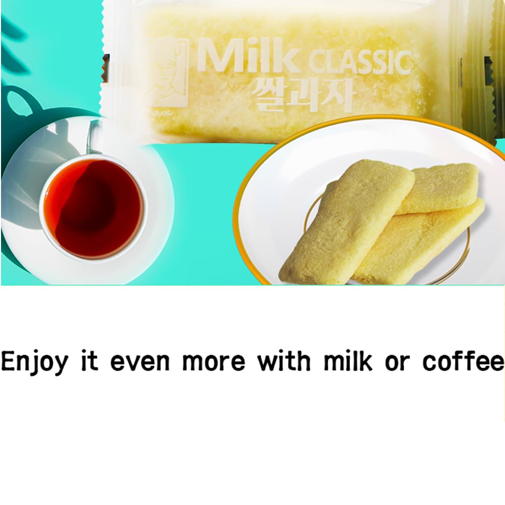 Korean Milk Rice Snack – 24 Pack Non-Fried Crispy Rice Bars, Individually Wrapped Snack, 240g (8.47oz) 밀크 쌀과자