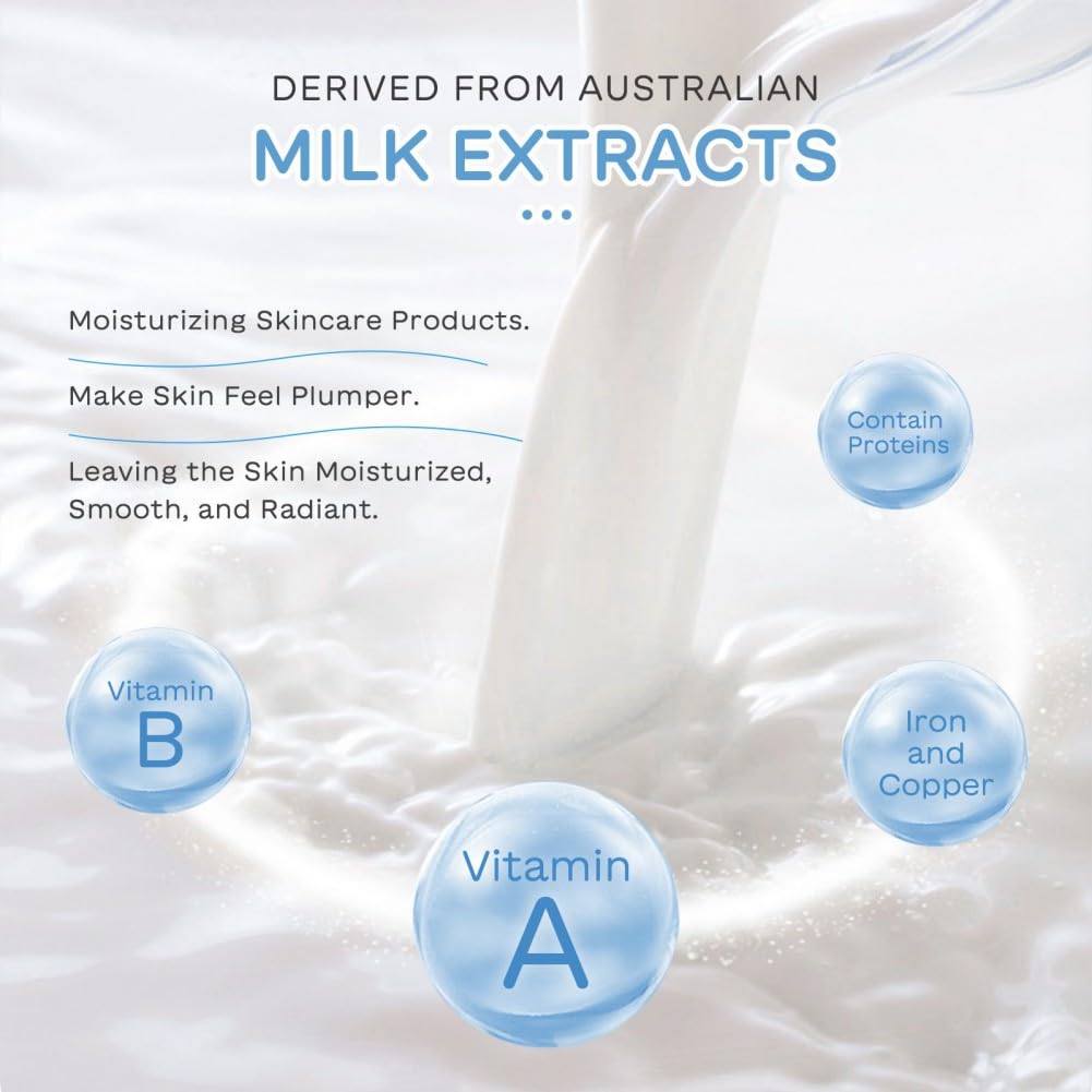 MILK SKINCARE SET: Milk skincare set is rich in protein, vitamin A, vitamin B and other minerals, which are very helpful for skin care. Skin care kit can help girls deeply moisturize skin, improve skin texture and make the skin more radiant and energetic.