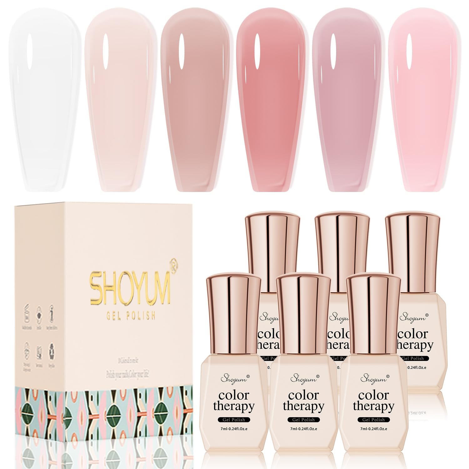 Environmental & Healthy: SHOYUM Translucent nude pink color gel polish set is made from 9 Toxin-Free Ingredients, making it safe and low-odor. There are no harsh ingredients or adhesives that lead to damaged nails.