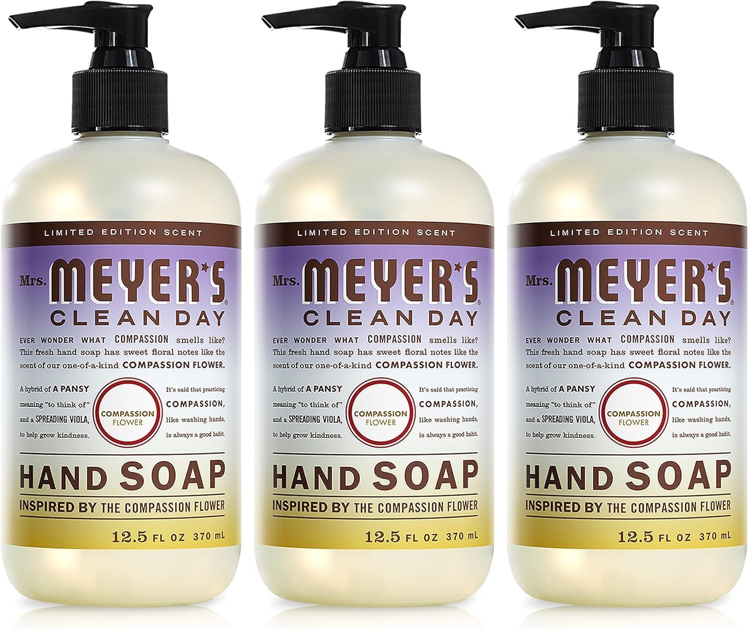 Mrs. Meyer’s Clean Day hand soaps are specifically made to clean and freshen hands without over drying, while also providing a special, singular scent for your home. Garden-inspired Compassion Flower hand soap has a lightly sweet scent with delicate floral notes. This hardworking hand soap formula contains olive oil, aloe vera, and essential oils, and thoughtfully chosen ingredients that clean and freshen hands. Made without parabens, phthalates or animal-derived ingredients and always a cruelty-free formula soap. Also available in other garden-inspired scents and products such as Dish Soap and Multi-Surface Cleaner. Mrs. Meyer’s – Rooted in Goodness.