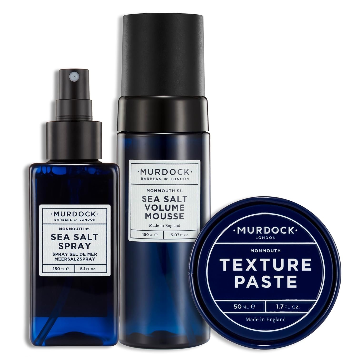 The Murdock London Sea Salt Spray, Volume Mousse, and Texture Paste set is the ultimate hair styling solution for those who want to add texture, volume, and hold to their hair. This set is paraben free, making it safe for daily use without any harmful chemicals. The Sea Salt spray, Volume Mousse, and Texture Paste work seamlessly together to add texture and volume to your hair, allowing you to achieve your desired style effortlessly. These products also provide a low-sheen finish, giving your hair a natural and effortless look. With the Volume Mousse and Texture Paste, you can add volume and hold to your hair, ensuring your style stays in place all day long. Upgrade your hair styling routine with the Murdock London Sea Salt Spray, Volume Mousse, and Texture Paste set.