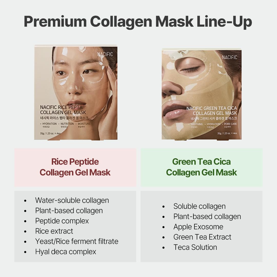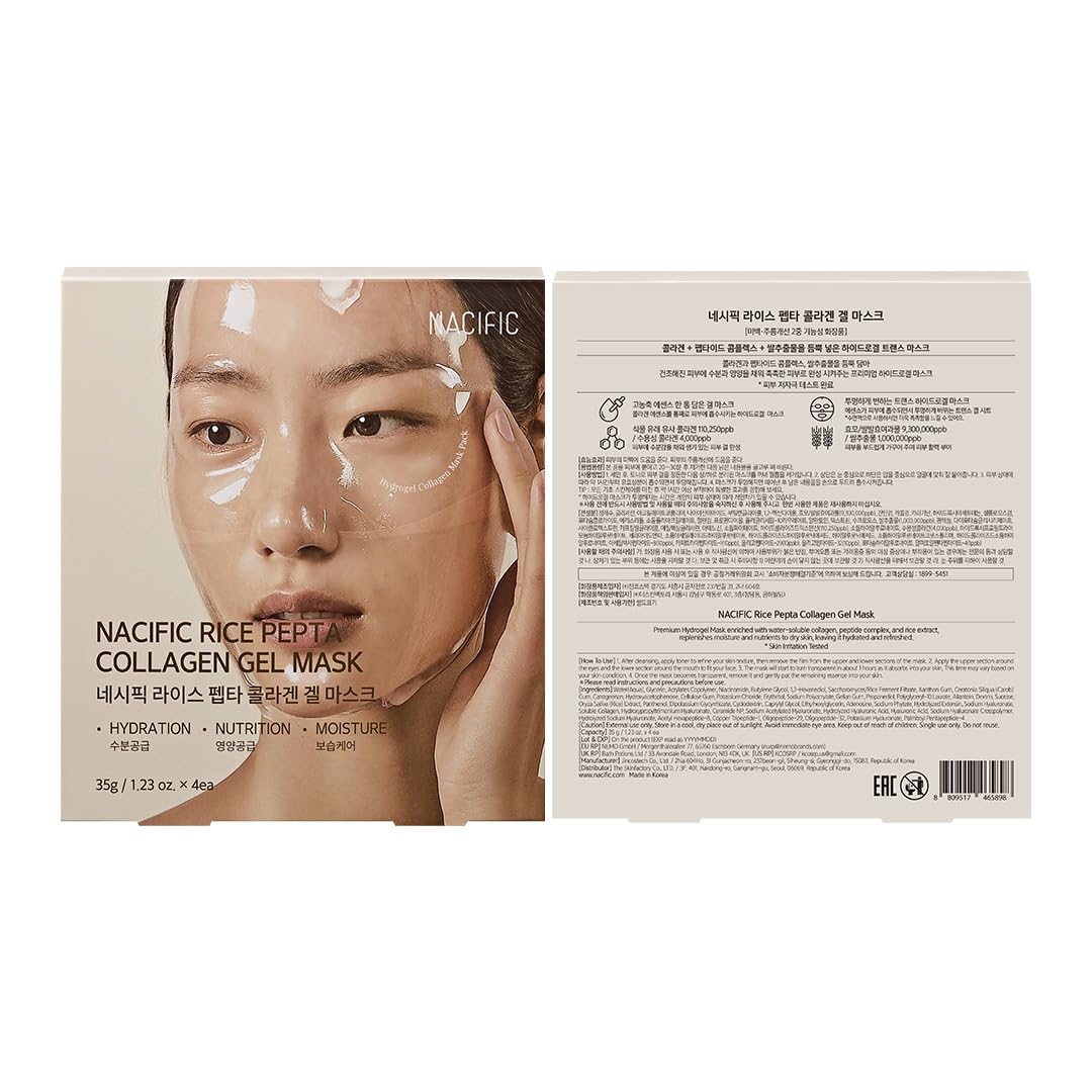NACIFIC Rice Pepta Collagen Gel Face Mask (Rice Peptide) 4EA Set, Hydrogel Care for All Skin Types, Hydrating, Firming, Elasticity, Glass Glow Skin, Korean Beauty, Christmas Gifts for Women