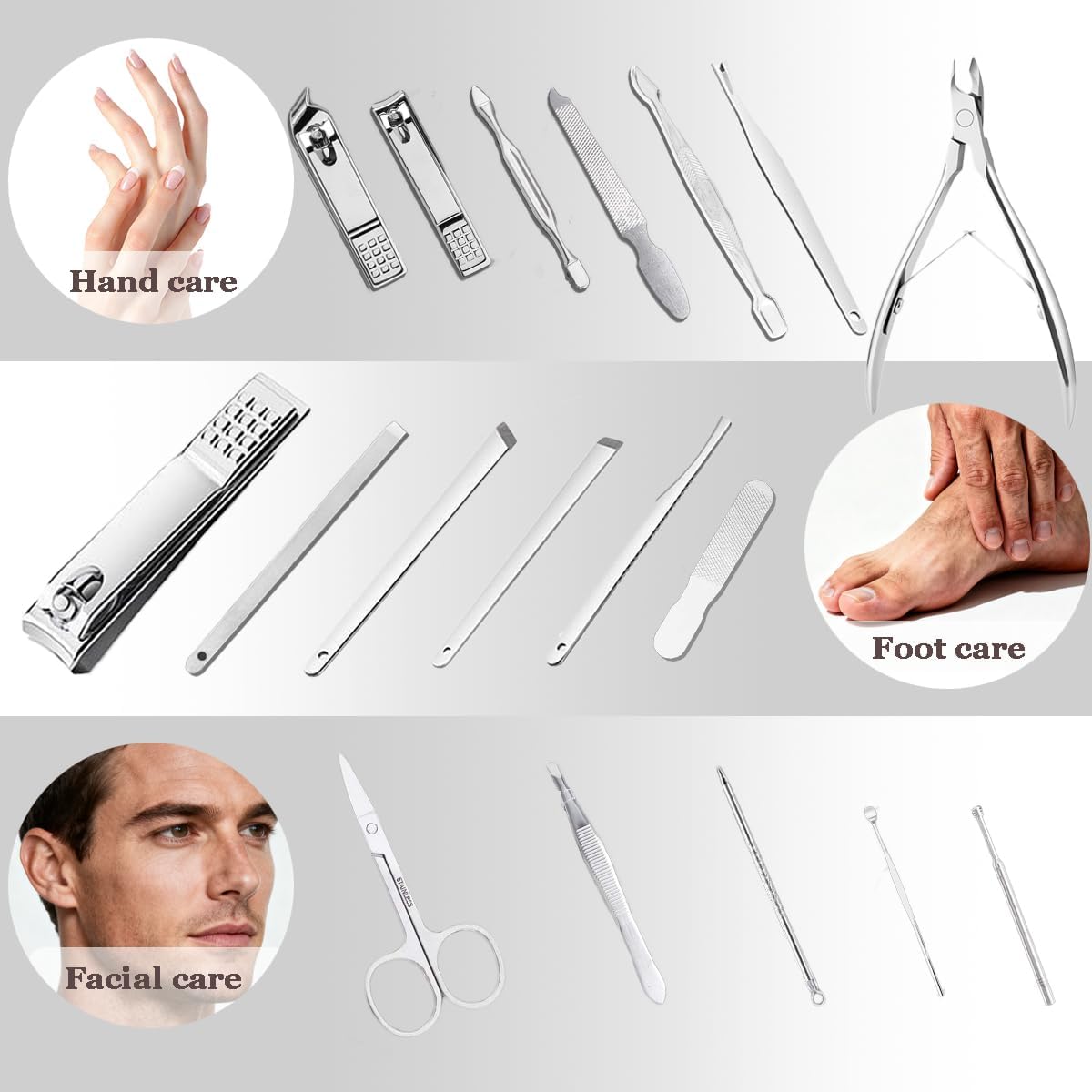All-in-One Professional Grooming Kit: Discover the ultimate 18-piece nail clipper set designed for complete care of hands, feet, and facial grooming. Trim thick nails, remove dead skin, and shape eyebrows effortlessly. This comprehensive manicure kit for men and women ensures precision and convenience for every detail