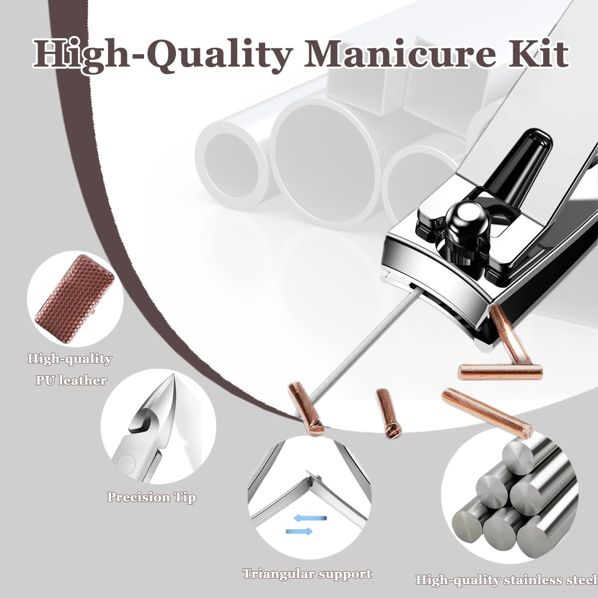 Sleek Leather Case for On-the-Go Use: Housed in a stylish PU leather travel nail cutter kit, this set is compact, lightweight, and ideal for travel gym bags or office drawers. Keep your tools organized protected and always within reach