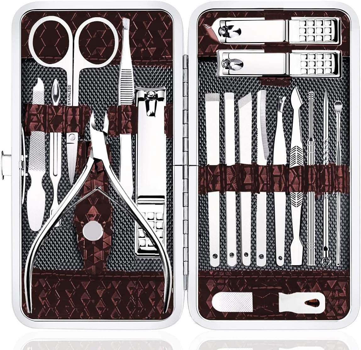 Nail Clipper Set 18 Pcs | Stainless Steel Manicure Grooming Kit: Fingernail Clippers & Toenail Pedicure Cleaning Cutter | Travel Nail Trimming Kit | Gifts for Women, Men, Him, Dad, Christmas, Birthday
