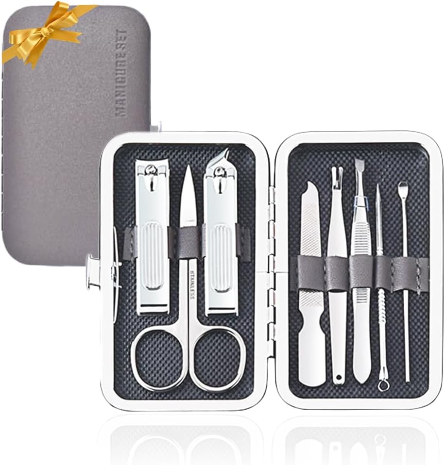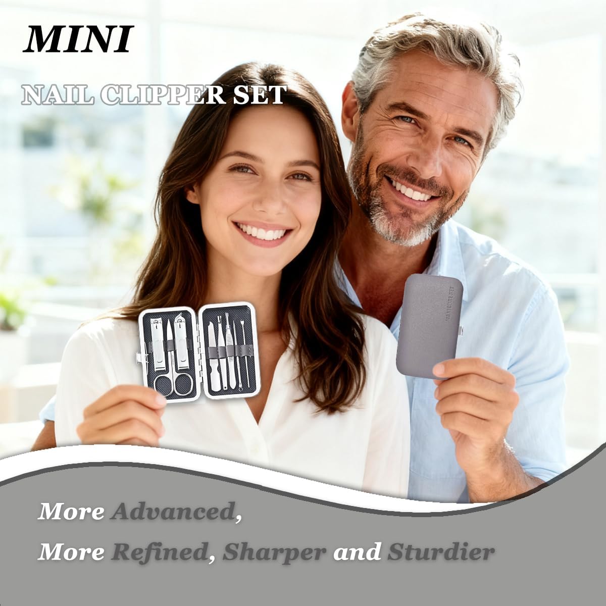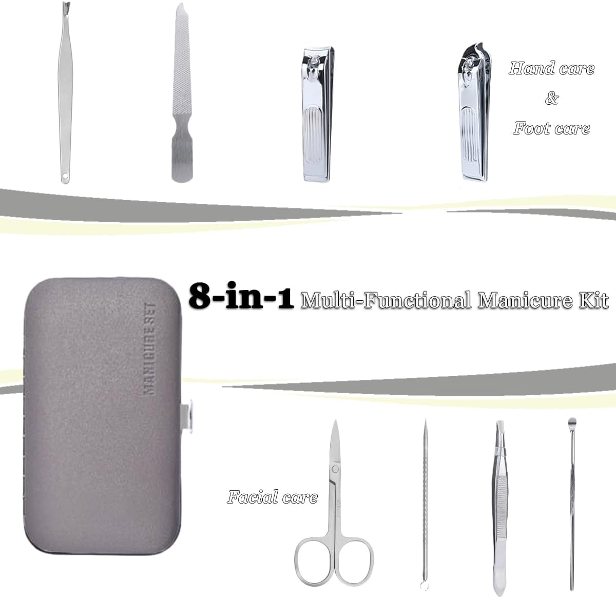 All-in-One Professional Grooming Kit: Discover the ultimate 8-piece mini nail clipper set designed for complete care of hands, feet, and facial grooming. Trim thick nails, remove dead skin, and shape eyebrows effortlessly. This comprehensive manicure kit for men and women ensures precision and convenience for every detail