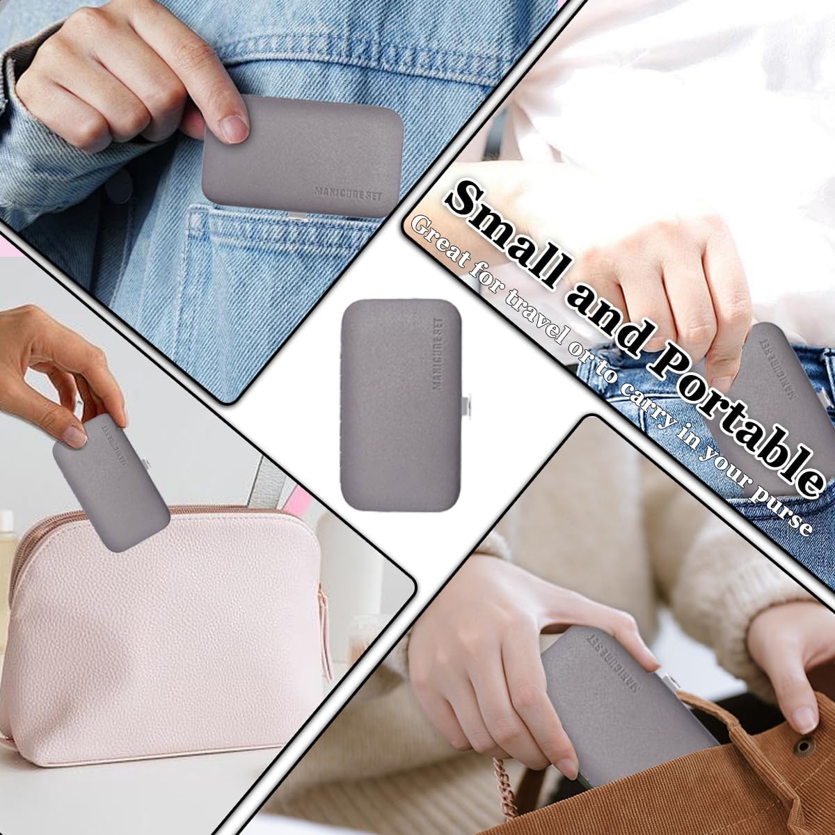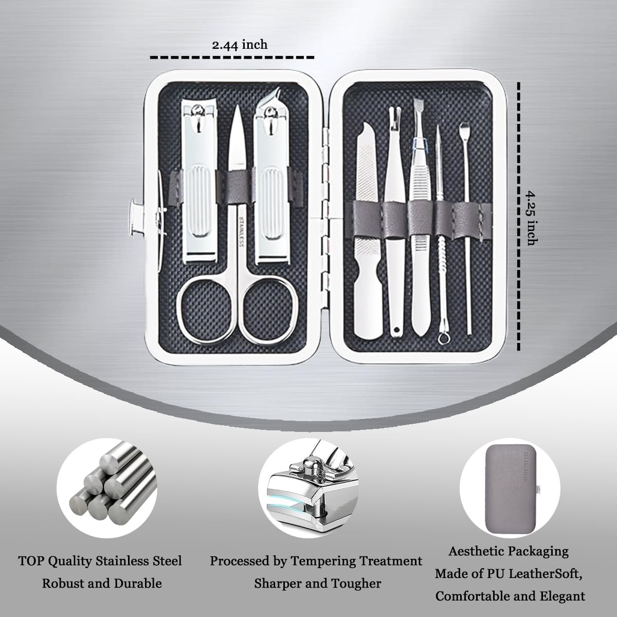 Nail Clipper Set, Stainless Steel Mini Manicure Grooming Kit: Fingernail Clippers & Toenail Pedicure Cleaning Cutter | Travel Nail Trimming Kit | Gifts for Women, Christmas, Birthday (Grey)