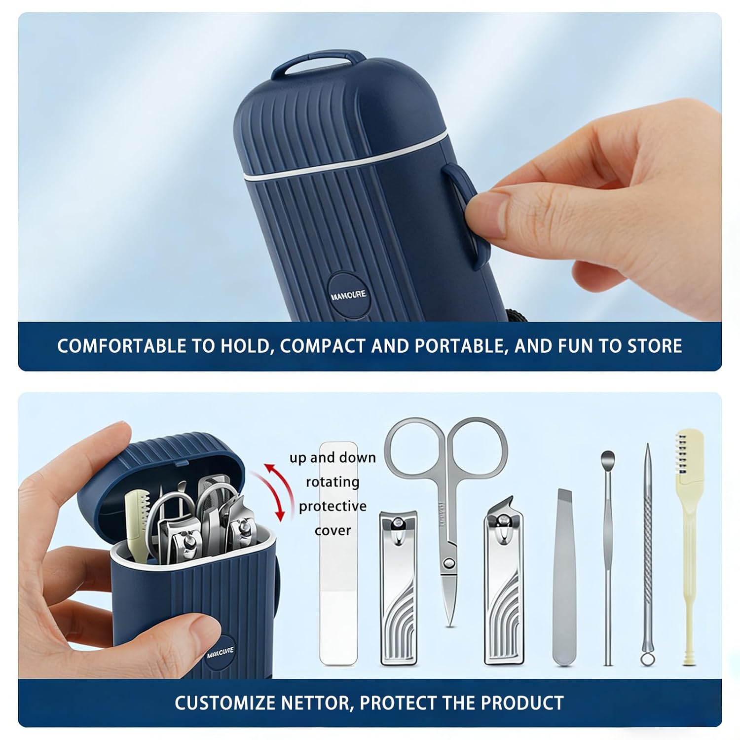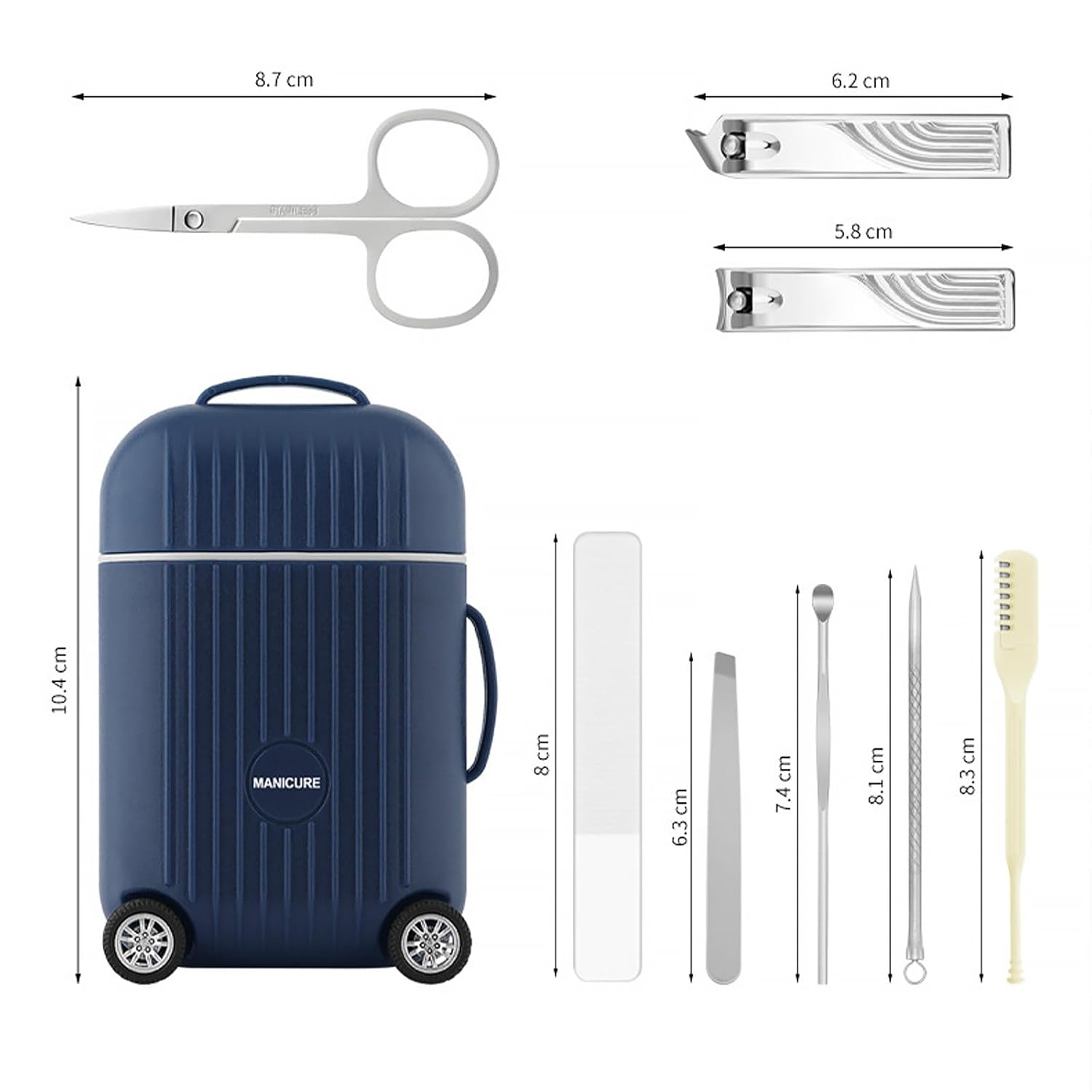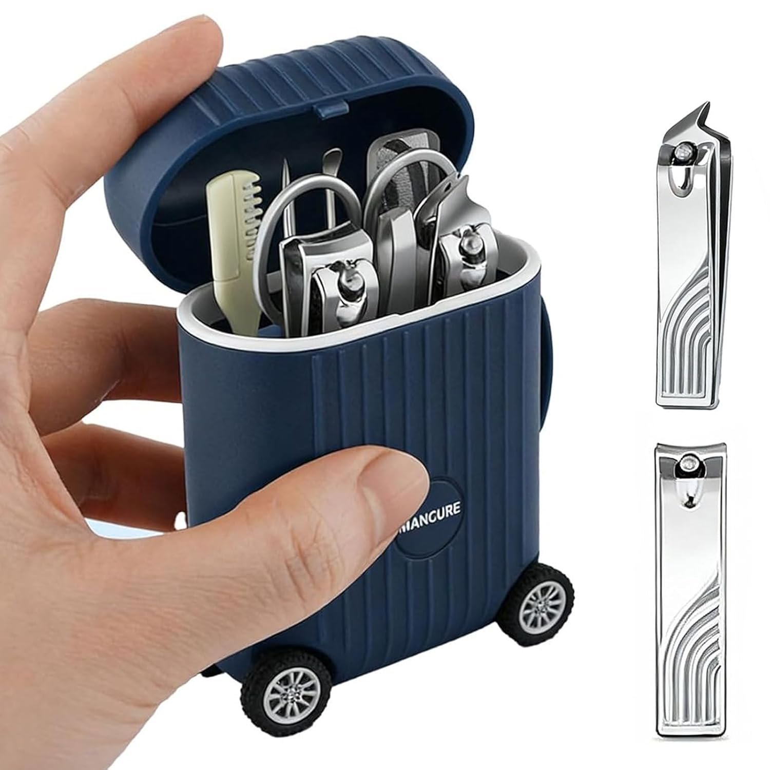 Nail Clippers Set, Mini Suitcase 8-in-1 Stainless Steel Manicure Pedicure Set, Portable Travel Grooming Kit with Nail Clippers & Scissors for Men Women, Unique Mini-Luggage Storage Case