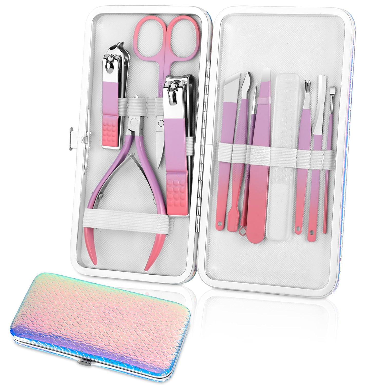 1.Women Manicure set : Aceoce manicure set including 12pcs personal care tools in a elegant PU leather case . All personal care tools includes in this set.Finger and toe nail clippers, eyebrow scissors and tweezers, cuticle care tools, facial care tools,manicure and pedicure tools,meet all your personal care needs in daily life and traveling.