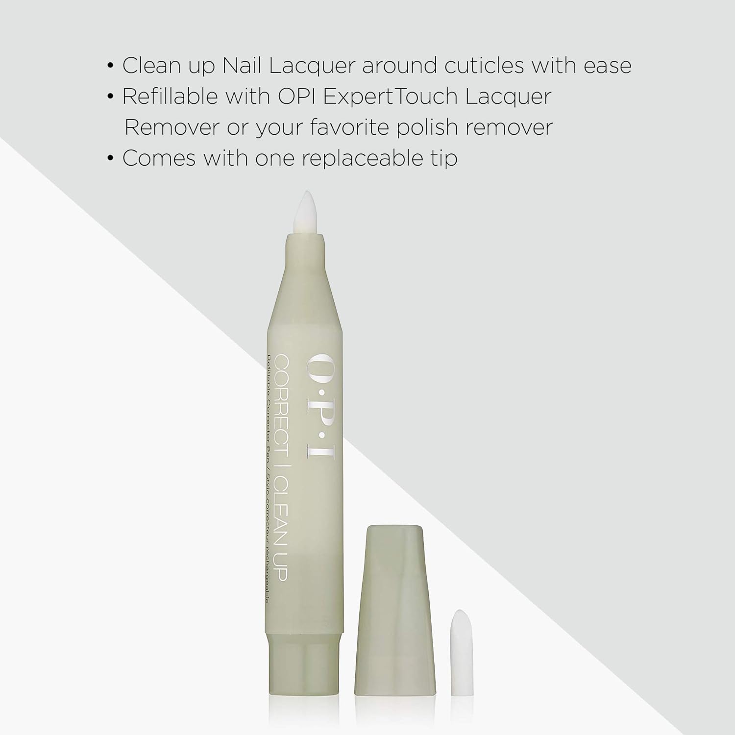 Clean up manicure mistakes using the OPI Corrector Pen and never have a bad manicure moment again. Don’t throw away the Corrector Pen once it runs out of liquid! Refill itwith OPI Expert Touch Lacquer Remover.