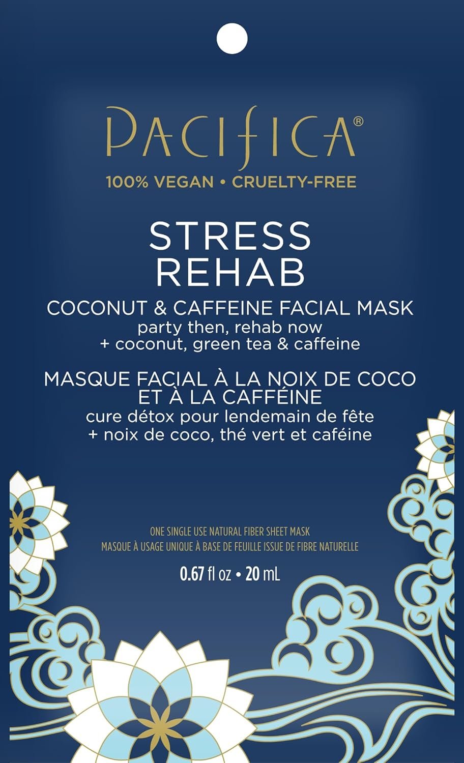 Stressed skin? Pacifica’s Stress Rehab Coconut & Caffeine Sheet Mask to the rescue! This de-stressing face mask is formulated to instantly calm and revitalize stressed-out complexions. Whether you pulled an all-nighter, endured a long work week, or are just feeling the effects of daily environmental stressors, this mask is your quick fix for redness, puffiness, and dryness. It’s like a refreshing tropical drink for your skin – cooling, hydrating, and energizing.