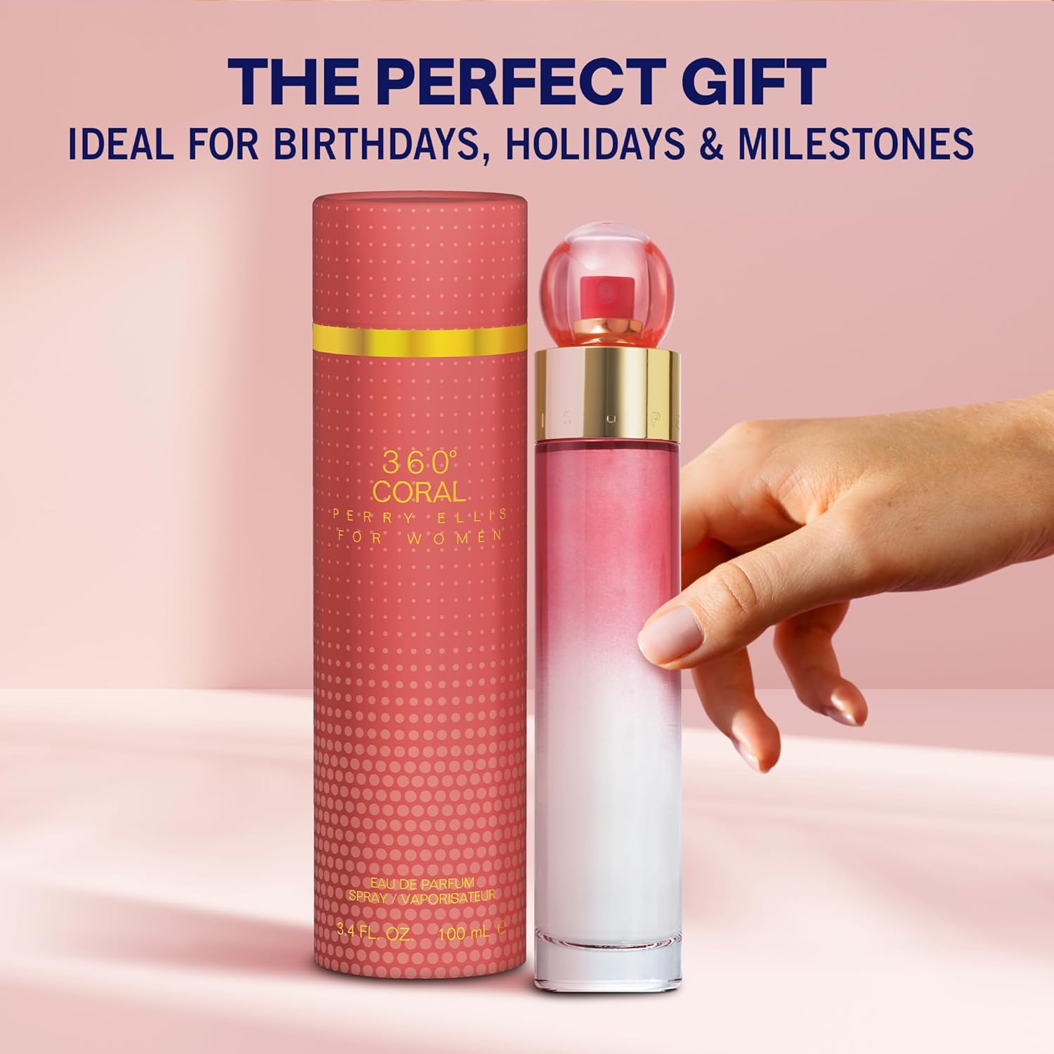 FLORAL AND FEMININE – Perry Ellis 360° Coral Eau De Parfum Spray for Women is a radiant fragrance that adds elegance to your beauty routine, perfect for both day and night wear