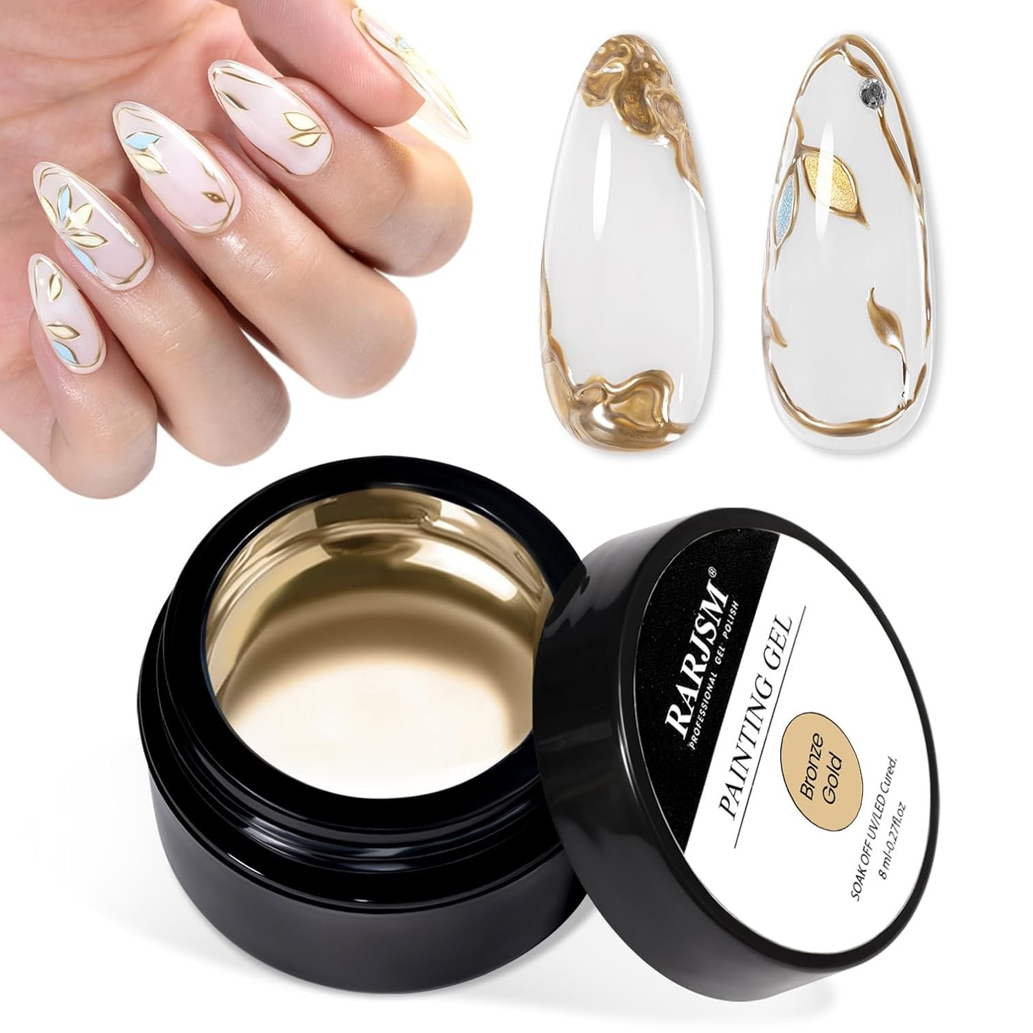 RARJSM Metallic Painting Gel Nail Polish Bronze Gold Chrome 3D Metal Painted Drawing Gel Polish 8ml Reflective Mirror Effect Glossy Shine Soak Off Curing Need Home Salon DIY Nail Art Liner Design