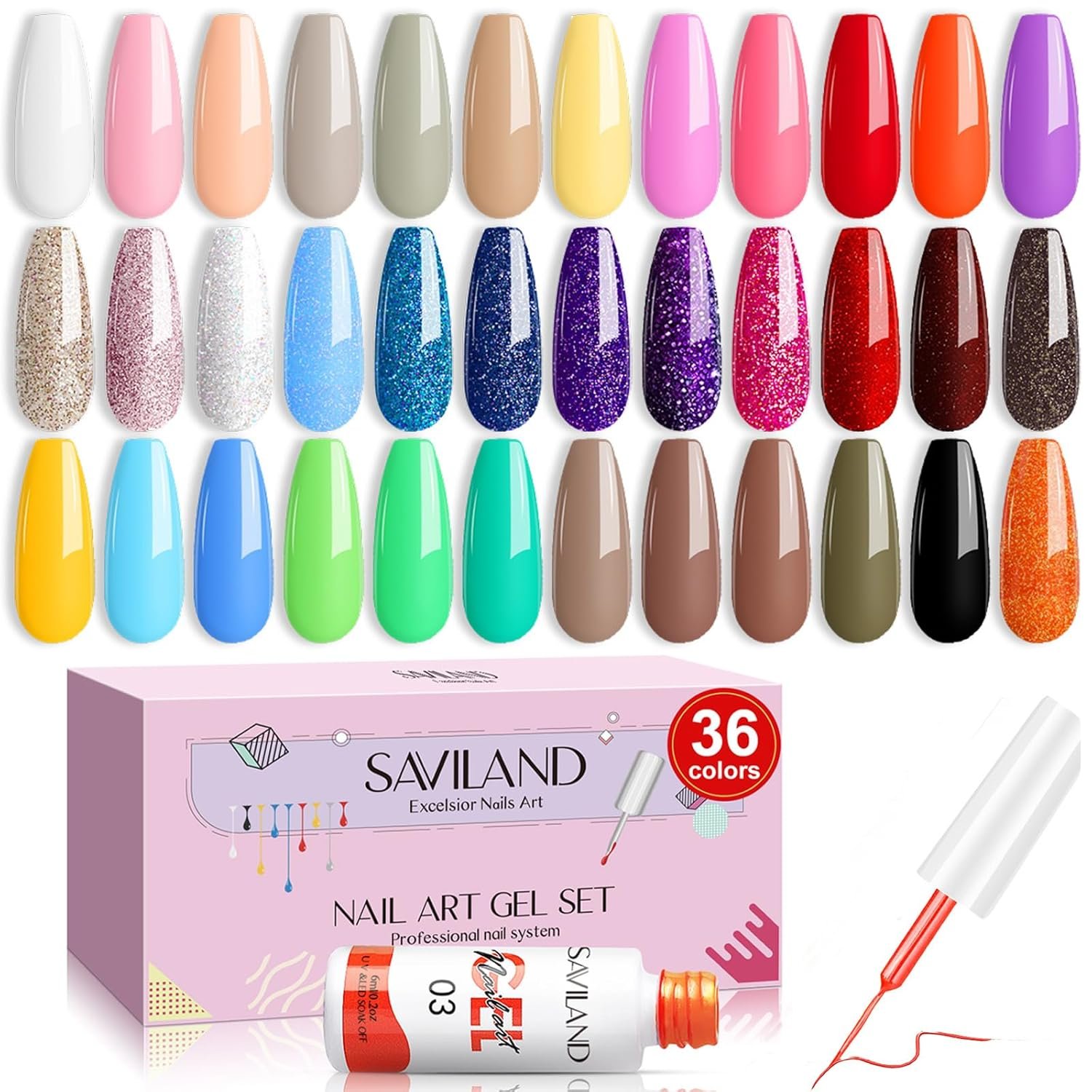 ALMAFI COLLECTION LINER GEL SET: SAVILAND Spring gel polish nail art gel liner set contains 36 fashionable and versatile colors. Here you can find all the colors you want, you can do all kinds of creative nail art designs, whatever trendy squiggly lines or abstract painting, use your imagination to make nail art designs!