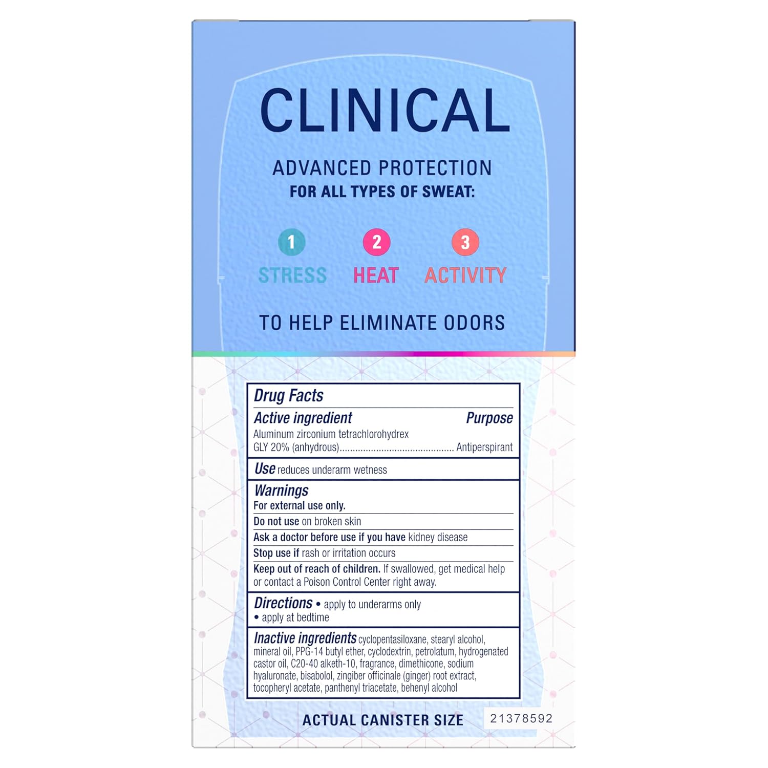Stay confidently dry and fresh with Secret Clinical Strength Antiperspirant and Deodorant for Women. This powerful invisible solid deodorant is specially formulated to provide 100-hour protection against stress sweat, ensuring you remain comfortable and confident all day long. Infused with hyaluronic acid and pH balancing minerals, this deodorant is designed to be gentle on your skin while delivering advanced protection against odor-causing bacteria. Experience the reliable freshness and protection of Secret Clinical Strength Antiperspirant and Deodorant and embrace your day without worry.
