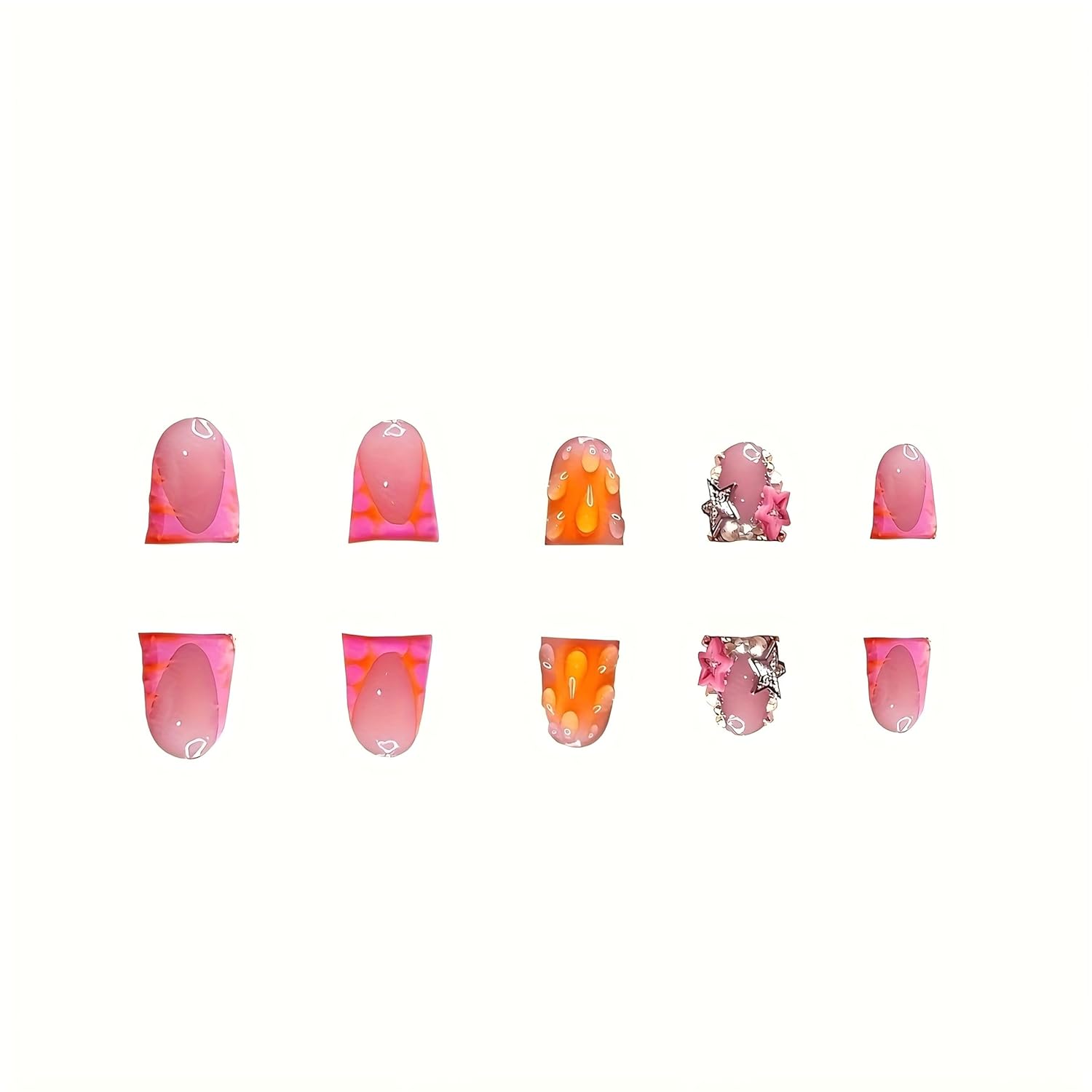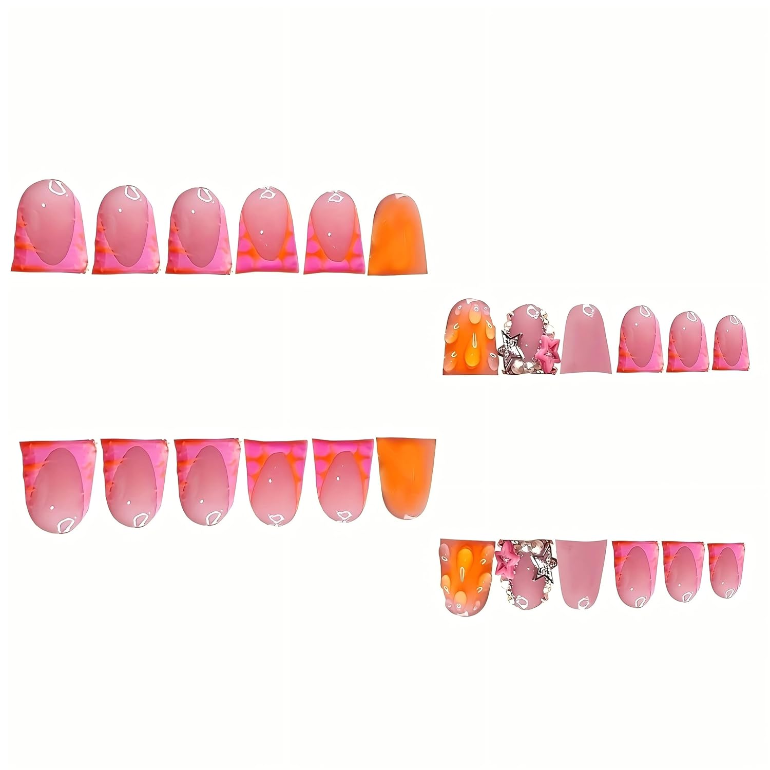 Fingernails Package: 24pcs press on nails,24 pcs jelly glue ,1 bottle of glue,1 An alcohol bag,1 nail file and 1 small wooden stick,Meet the needs of tools required by your DIY.