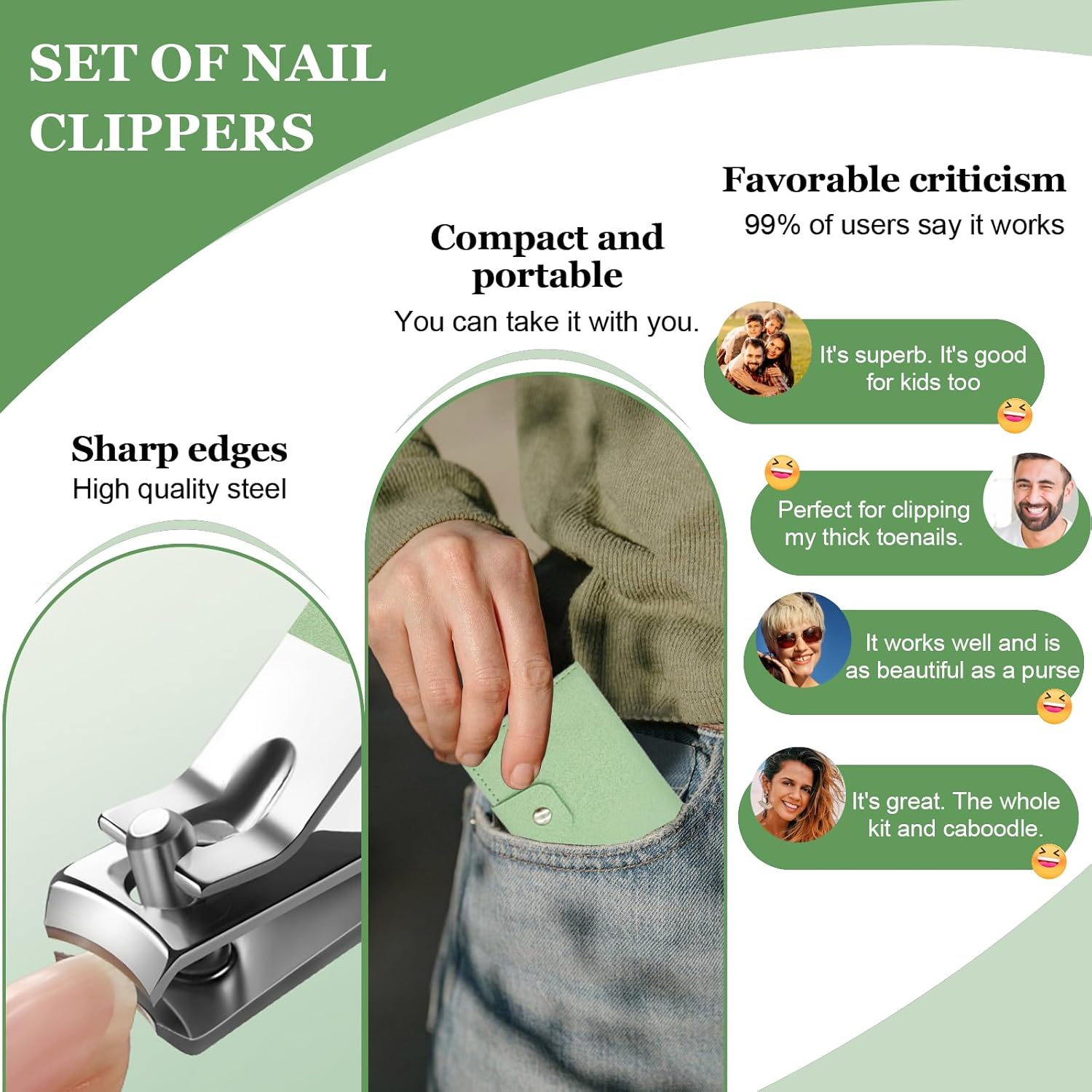 Customers find the nail clipper set to be of good quality and well-priced. The sharpness receives mixed feedback.
