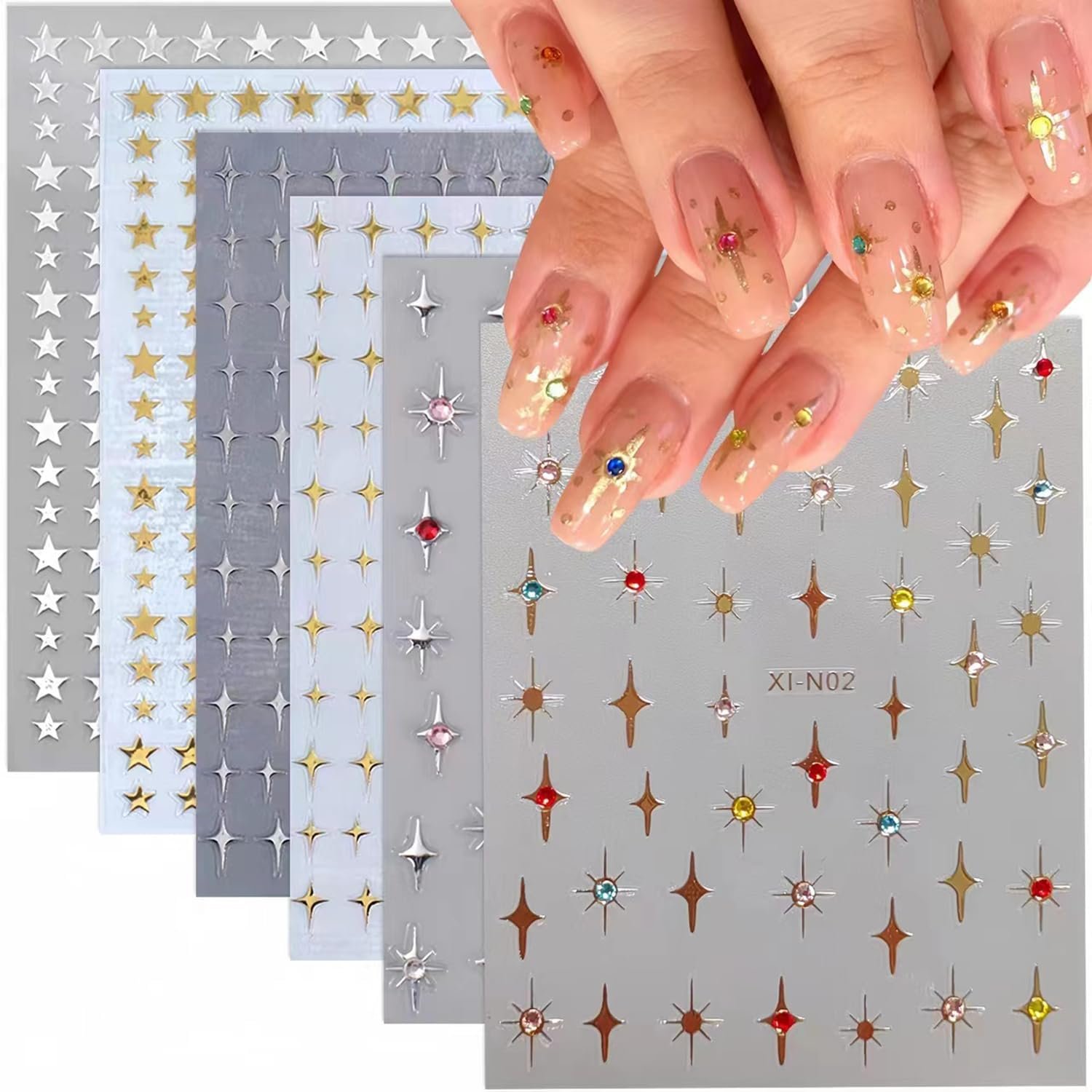 Package: You will get 6 sheets star theme nail art stickers, Can add a strong fashion atmosphere. Perfect for women girls, exquisite nail design, DIY fashion nail decoration.