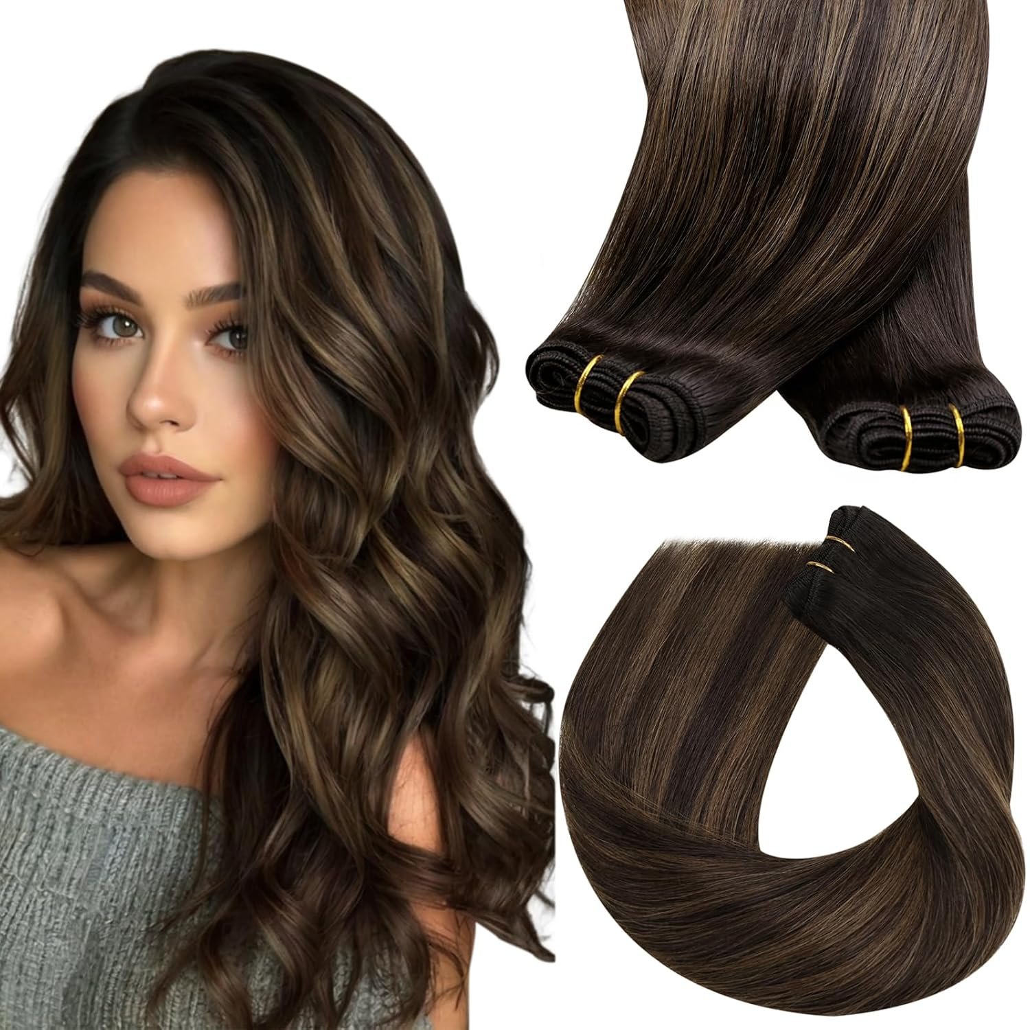 Double Weft Design: Our sew in extensions blend naturally with your hair, using no clips or wires; The double weft design ensures durability; Short hairs at the root of extensions are normal and not a concern