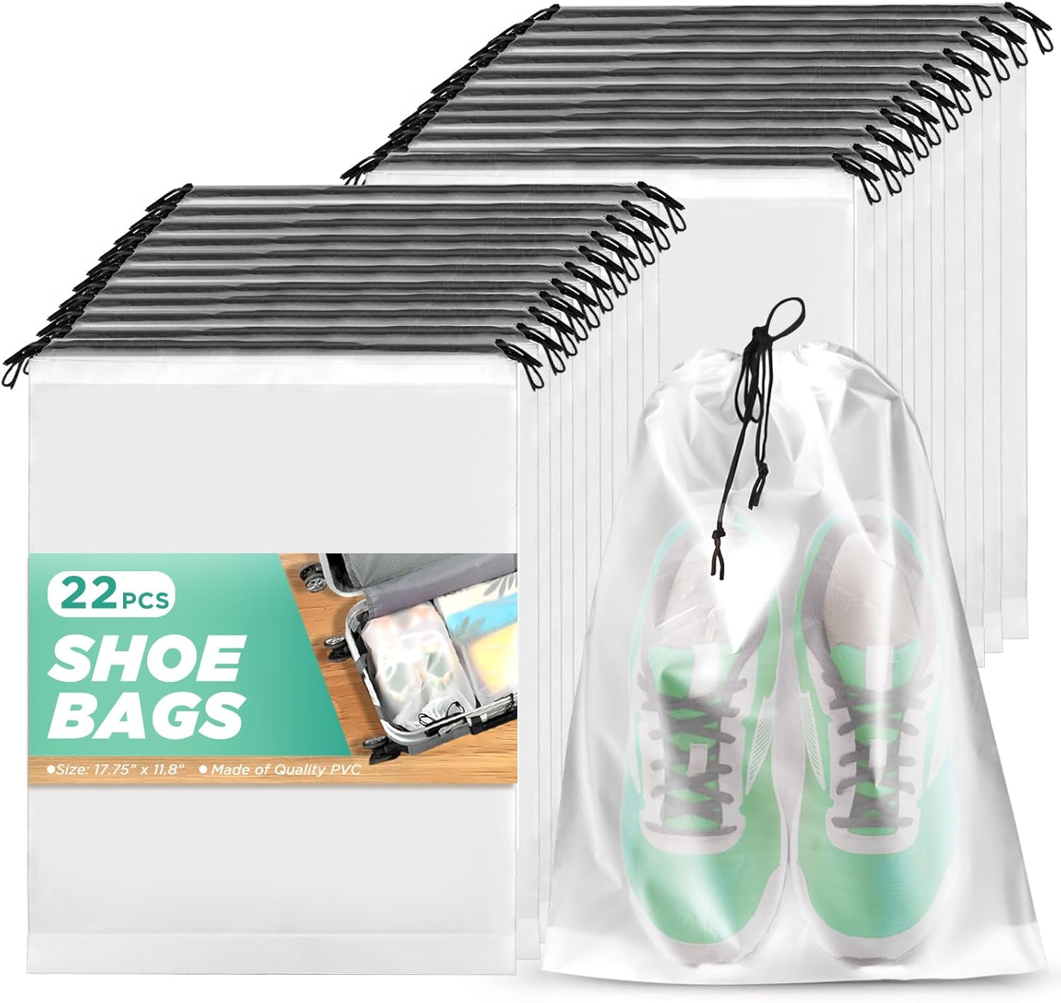 【Generous Size】 With dimensions of 15.75 x 11.8 inches, our shoe bags provide ample space for all types of footwear. Whether you need to store shoe covers, high heels, sneakers, running shoes, loafers, boots, or flip flops, these bags are the perfect size. 22 individual shoe bags, offering plenty of options for organizing your shoes and other items. Not only are they great for footwear, but they can also accommodate clothing, travel pillows, handbags, slippers, and even bedsheets.