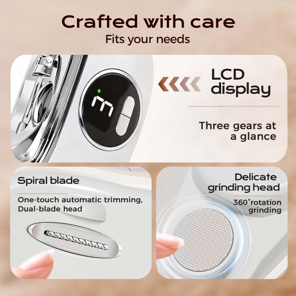 【Universal Automatic Fingernail Grinder】This universal automatic fingernail grinder is designed to all nail types, making it ideal for adults, seniors, and beginners. The grinding system trims nails evenly and smoothly, helping reduce the risk of over-cutting or injury during use.