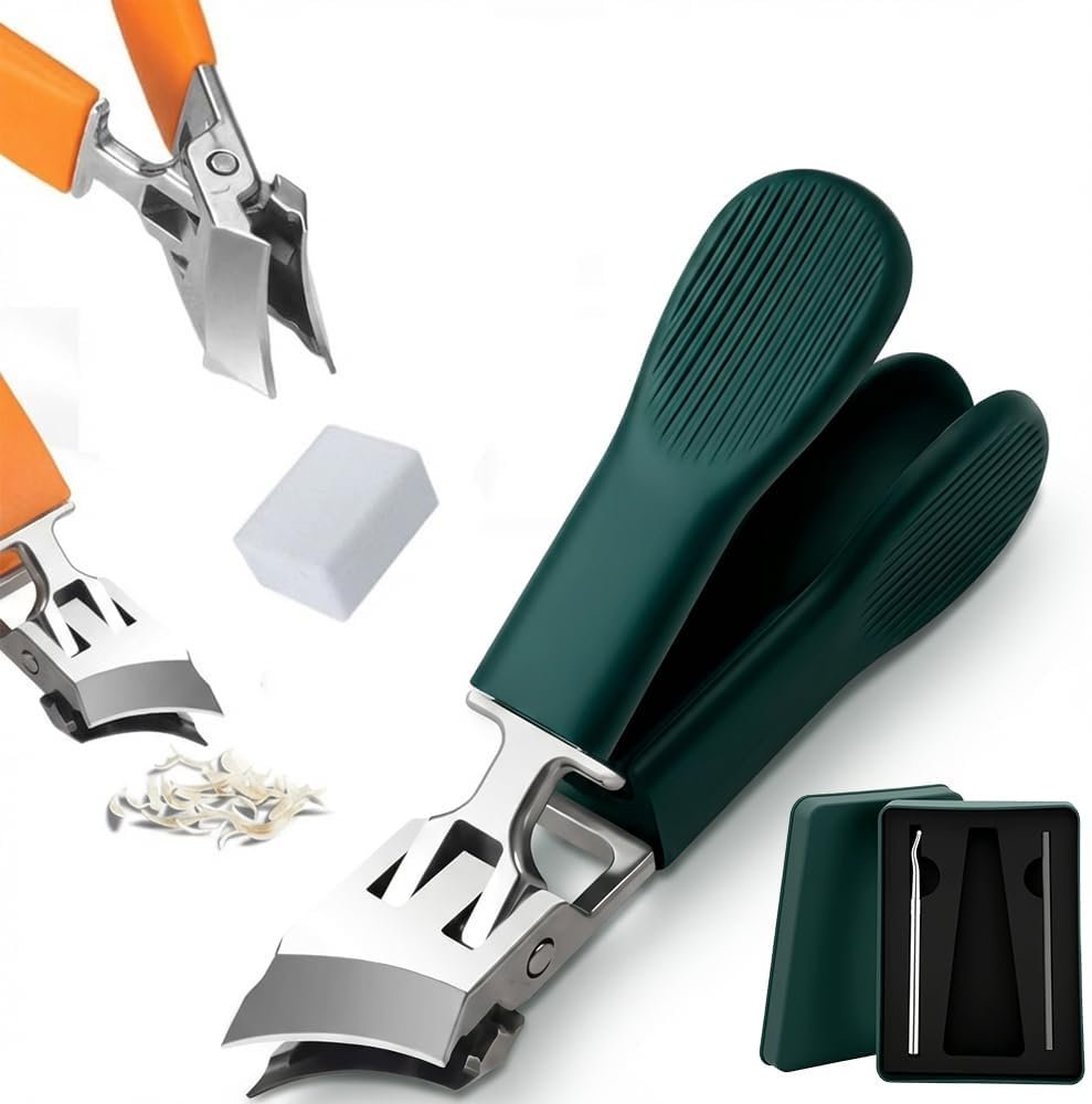 ✨️【Slanted Wide-Opening Design】This wide-opening anti-splash slanted nail clipper features a slanted curved blade that fits the natural curve of nails and reaches deep into nail grooves for detailed care. The wide-opening structure easily cuts through thick, hard nails without repeated pressure, making it suitable for trimming nails of all conditions.