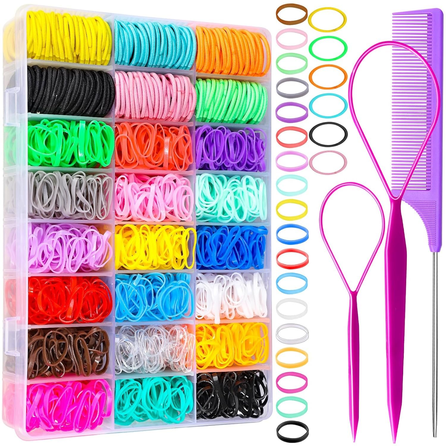 1500PCS ELASTIC HAIR TIES Included in this package is 1500PCS hair bands in 18 different bright & fun color . Made of high quality TPU material, the hair band has good elasticity, not easy to break, comfortable to wear, and firmly holds adults’ and kids’ hair .1500pcs rubber elastic hair ties are enough to braid different hairstyles. Suitable for ponytail, fine hair, braided styles , wedding hairstyle, or DIY more charming hairstyle.